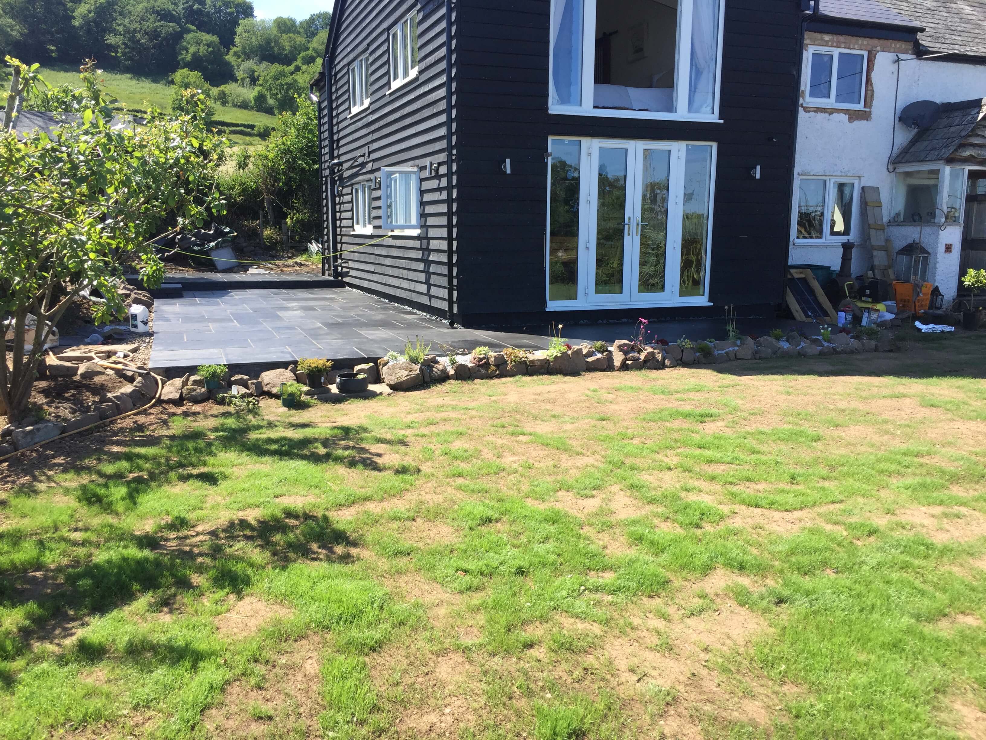 Installation of new driveway and outdoor living area. Including large patio and full property landscaping.